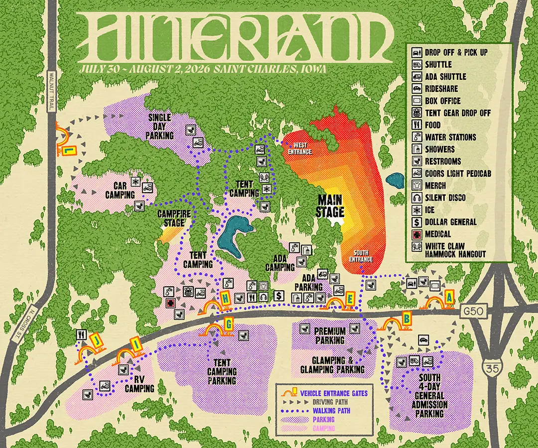 Chairs with legs, including camping and low-lying beach chairs, are not allowed in the festival grounds. You are welcome to bring a legless chair or blanket. If you have a medical need for a chair and would like info on how to be granted an exception through our ADA services, please email access@hinterlandiowa.com or visit our ADA Tent onsite.